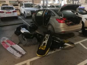 Once we arrived in Muscat we made our way to the hire car and the first problem! It seems they don't do "hatch backs" here and we could only get a Focus sized car with a boot. This was not a lot of good when we had two huge surfboard bags with 5 surfboards plus a foil board plus way too many kites.